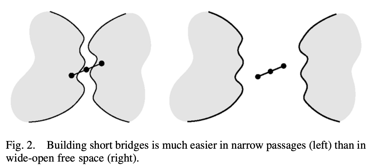 It is unlikely to sample the points in the narrow bridge